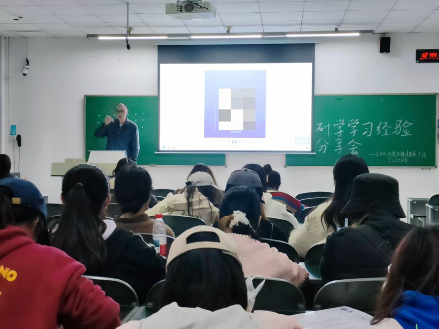 秋意渐浓,书香满园。2025年11月3日中午12:40分,四川师范大学服装与设计艺术学院学生会学习与学业发展部在成龙校区第一教学楼A102教室成功举办研学经验分享会。学院2023级优秀学生常芮以“世界之大,始于足下”为主题,分享了暑期赴英国剑桥大学的研学经历与深刻思考。现场座无虚席,同学们在精彩的讲述中开启了一场跨越山海的学术文化之旅。
