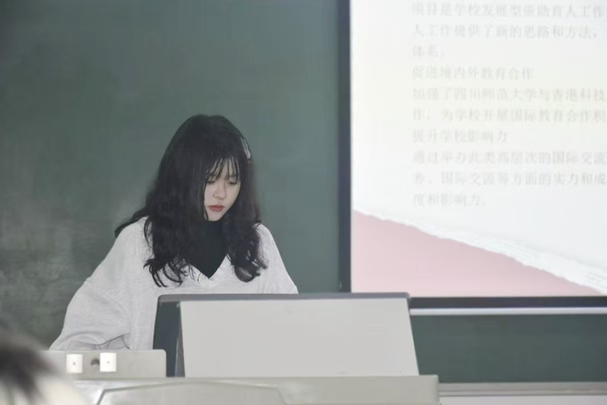 2025年11月3日中午,四川师范大学服装与设计艺术学院学生会学习与学业发展部在成龙校区第一教学楼A102教室成功举办“狮苗智汇未来 赋能强师计划”研学心得分享会。学院2023级优秀学生李一作为主讲人,分享了参与学校“狮志笃行”发展型资助育人境外研学项目,赴香港科技大学研学的经历与收获。同学们反响热烈。