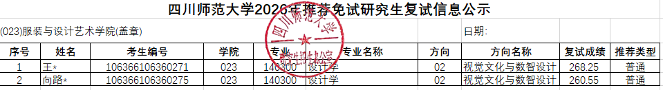 023服装与设计艺术学院--推免生复试信息公示.xlsx (0.08M)