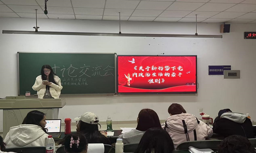 讨论开始,全体党员发展对象围绕三项核心要求展开热烈讨论。大家紧密结合前期专题讲座所学,将理论知识与思想实际相结合,深入学习习近平新时代中国特色社会主义思想的世界观与方法论,重点围绕《中国共产党章程》中关于党员义务的规定以及《关于新形势下党内政治生活的若干准则》中 “严明政治纪律”“坚持民主集中制” 等内容进行学习和交流。