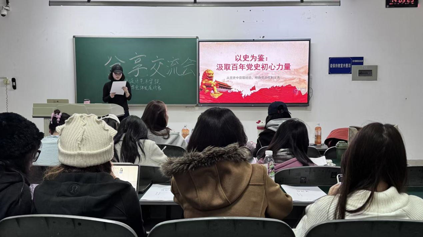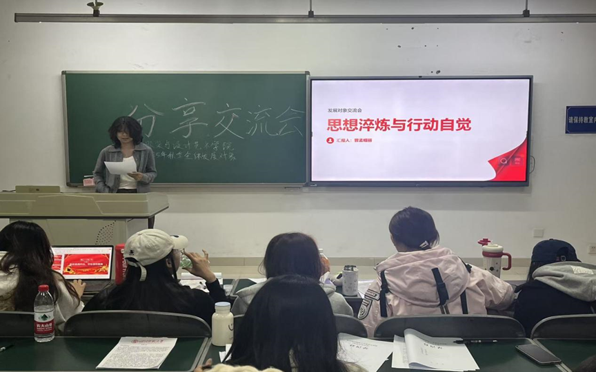为扎实推进学院党员发展对象培养教育工作,引导青年学子深化党的理论知识学习、强化对党的认识、坚定理想信念。11月10日,服装与设计艺术学院2025年秋季全体党员发展对象专题交流暨分享会在成龙校区第一教学楼A212教室举行。本次活动以 “学思想、强党性、重实践、建新功” 为导向,通过深度研讨与集中分享,推动理论学习走深走实。