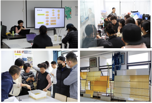 实践环节更深度呼应实验室“多学科协同”建设理念,学员赴四川省纤维检验局开展实操训练,在王允丽老师亲授下,熟练掌握纤维横纵截面标准制样与观测技术,为文物材质鉴别、工艺溯源筑牢技术基础。色彩复原模块中,研究员以 “明黄色”为范例,详解其历史沿革、染料结构与呈色机理,学员们选用黄檗等传统染料,在丝绸、棉料等不同载体上完成植物染实践,深化对传统工艺的理解。